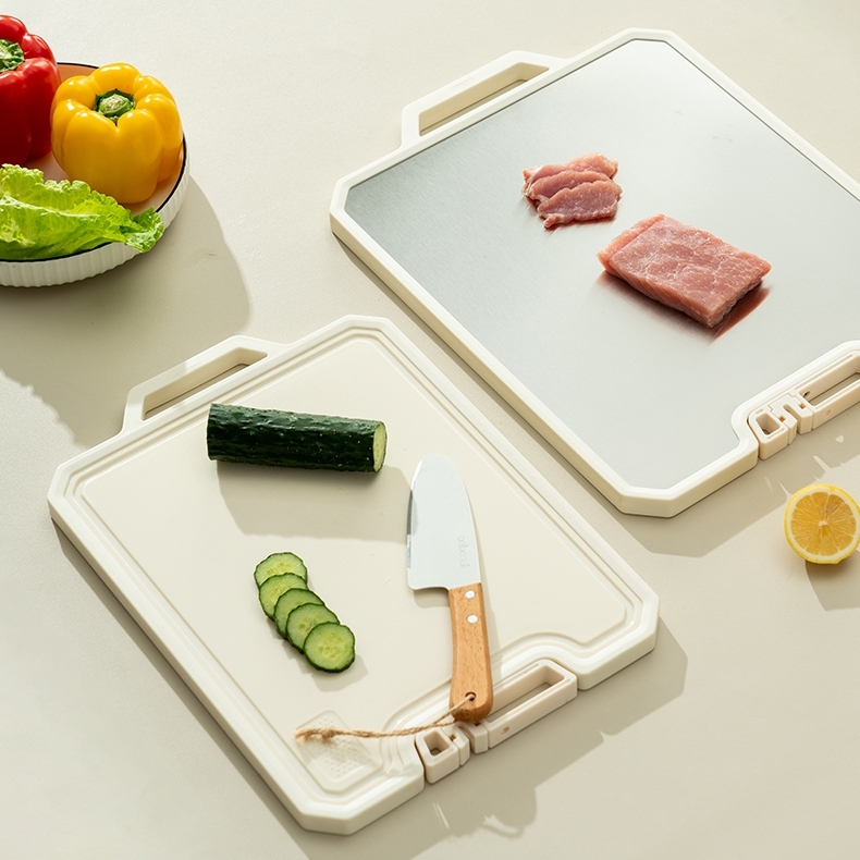 99KHOME Talenan Daging Sayur Premium Dua Sisi Multifungsi Stainless Plastik Cream 3in1 H725