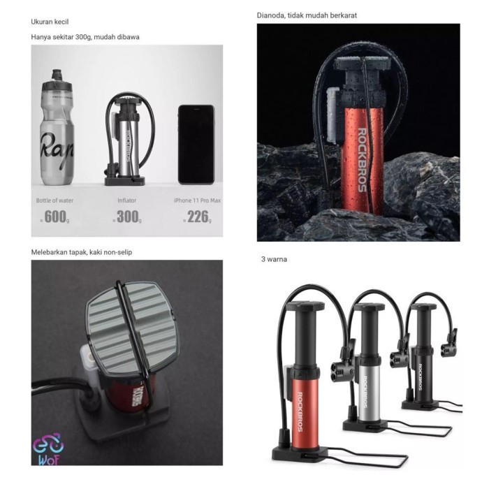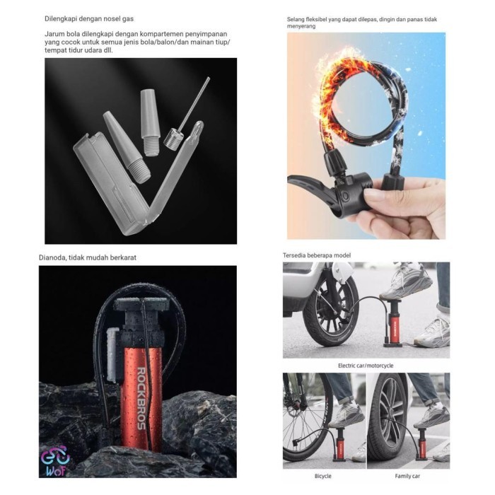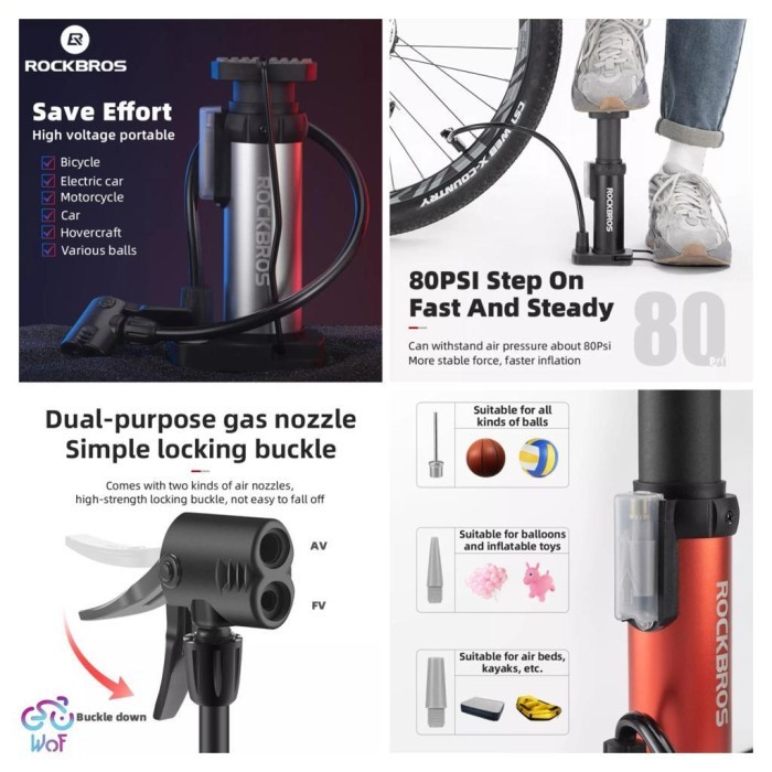 ROCKBROS 4522L Cycling Pompa Multifungsi Sepeda Bike Bicycle Pump AV/FV Portable 80PSI 4522