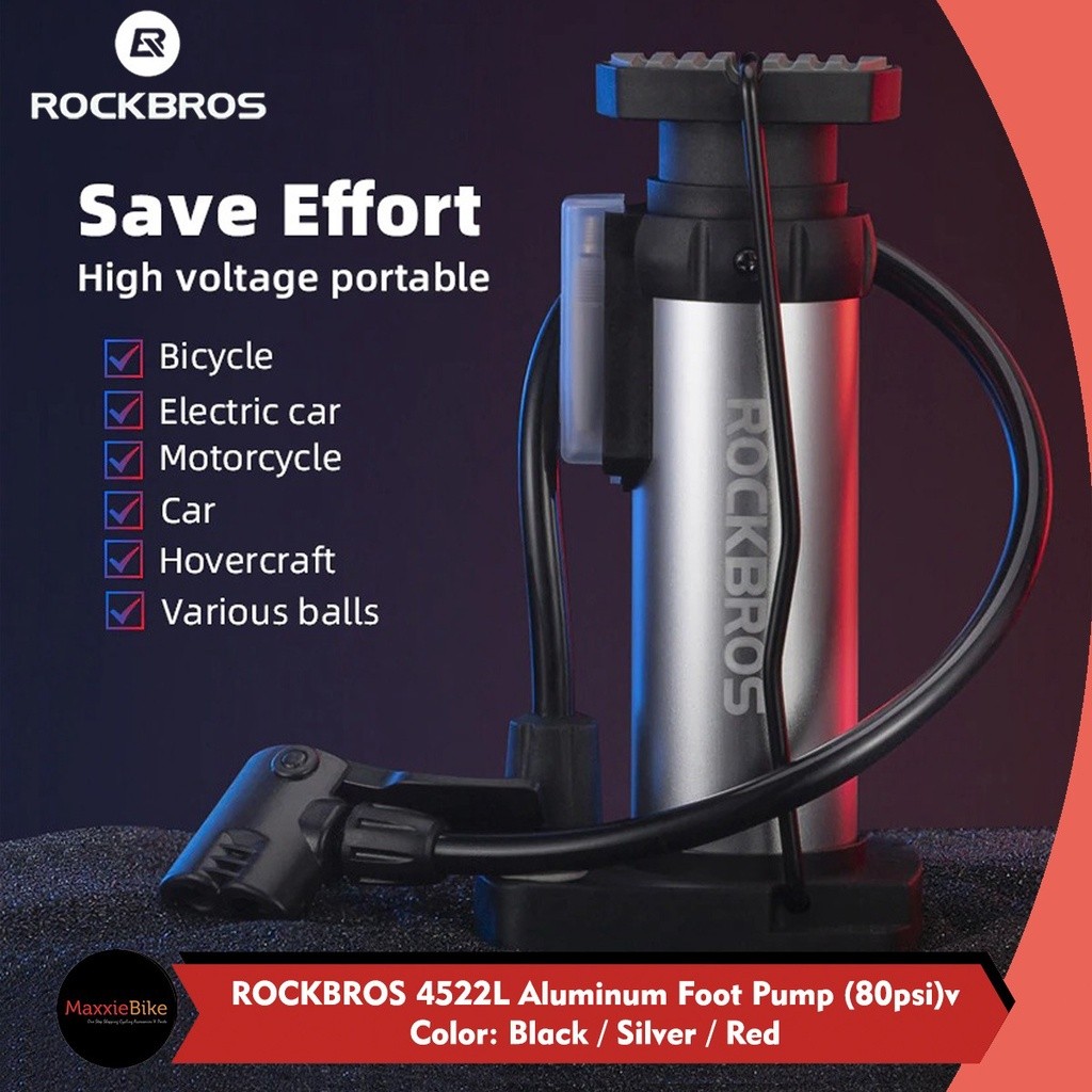 ROCKBROS 4522L Pompa Sepeda Mini Portable Bike Pump 80 PSIPentil Kecil Besar AV/FV Presta Schrader