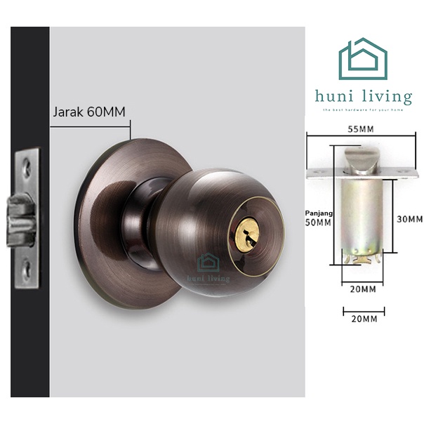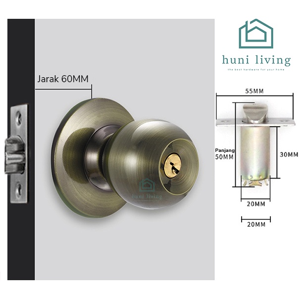 Kunci Pintu Kamar Mandi Bulat Onat / Tarikan Gagang Handle Putar Stainless 60mm