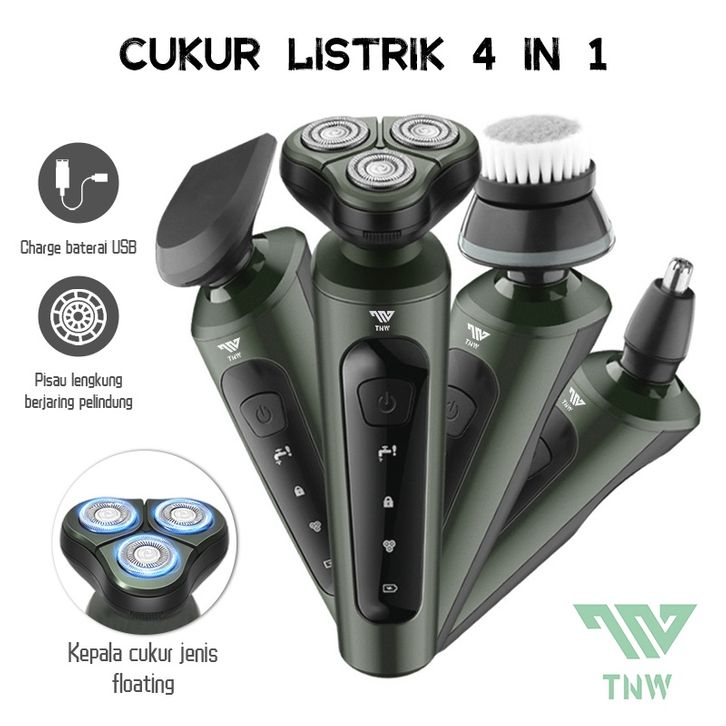 TNW PS6 4 in 1 Electric Shaver Razor Alat Cukur Listrik Nose Hair Trimmer Rechargeable Beard Face Hair Trimmer Grooming