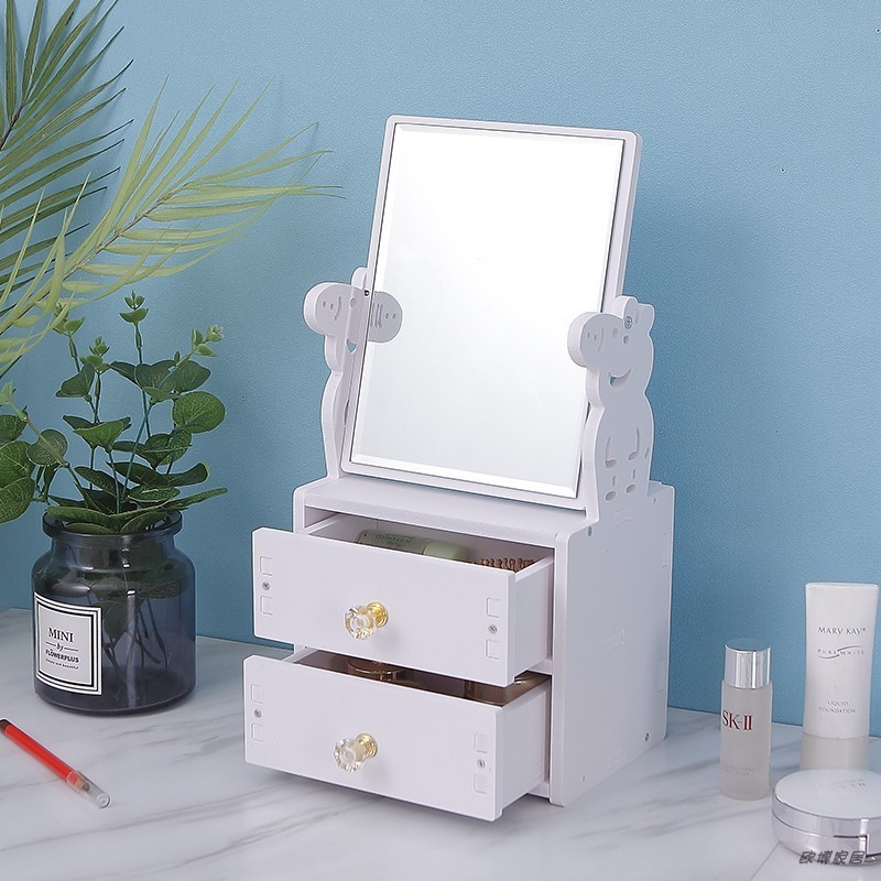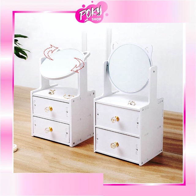 POKY - H5579 PVC Rak Makeup 2 Susun Dengan Cermin / Rak Kosmetik Tempat Make Up / Rak Cermin Make Up 2 Susun / Rak Laci