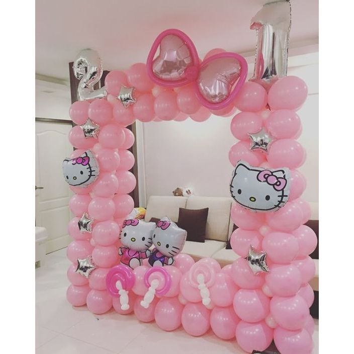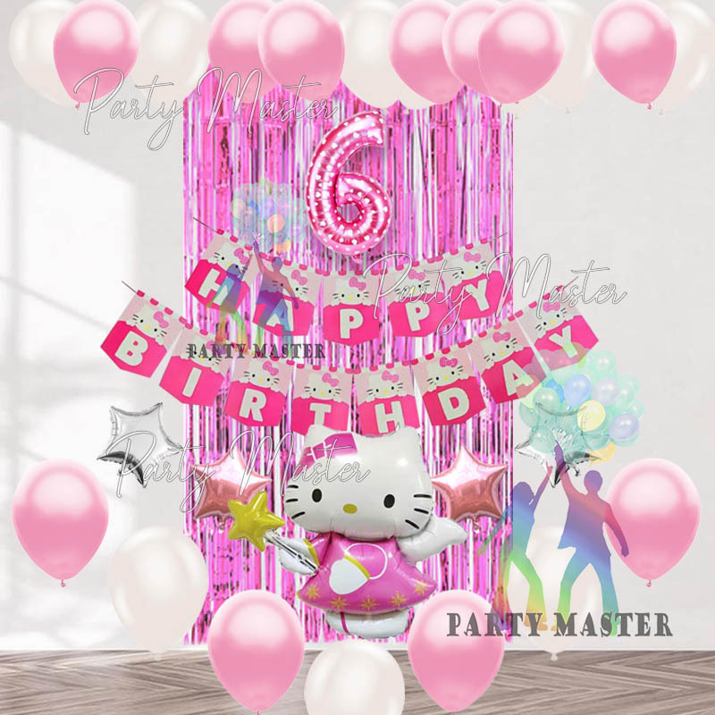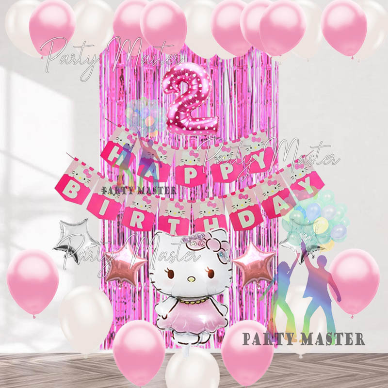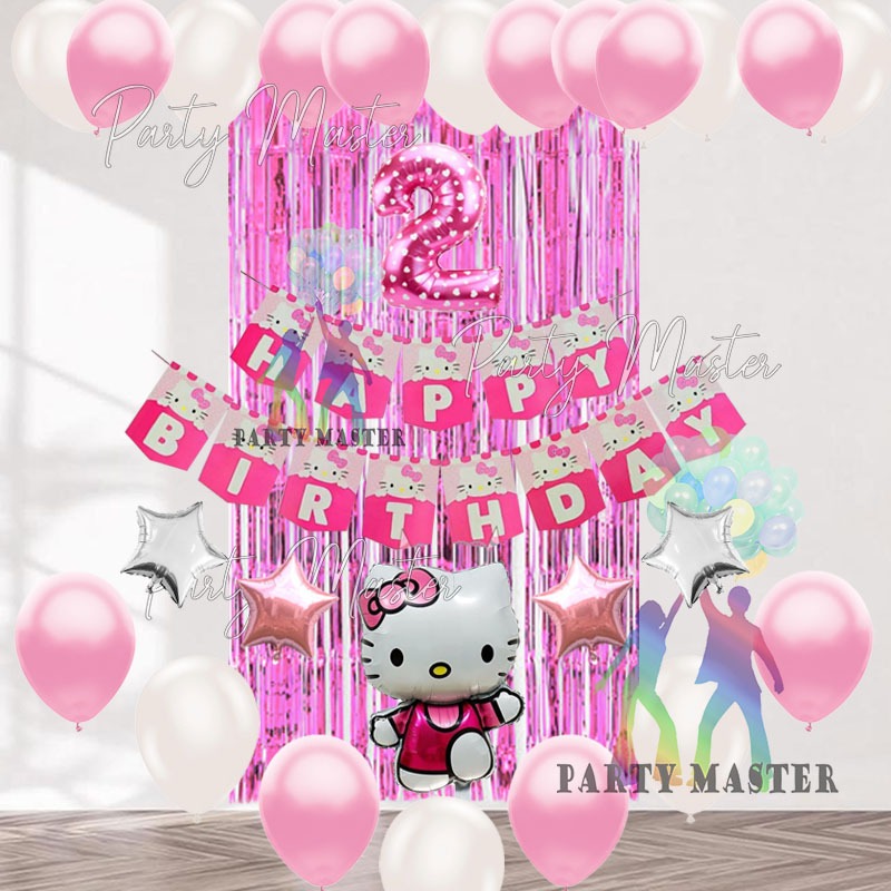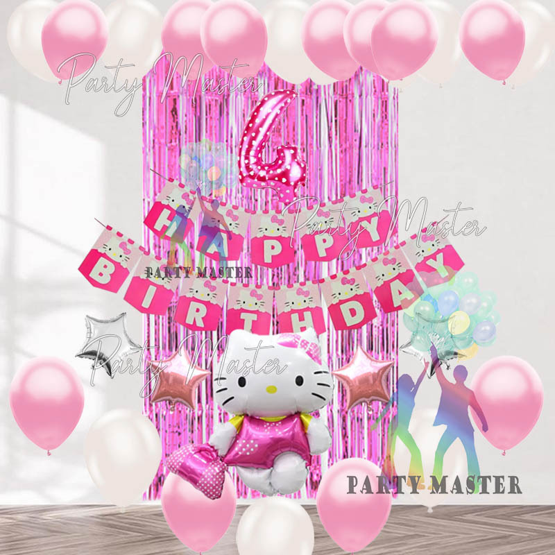 Paket Dekorasi Balon Ulang Tahun Happy Birthday Tema Hello Kitty simple hemat simpel