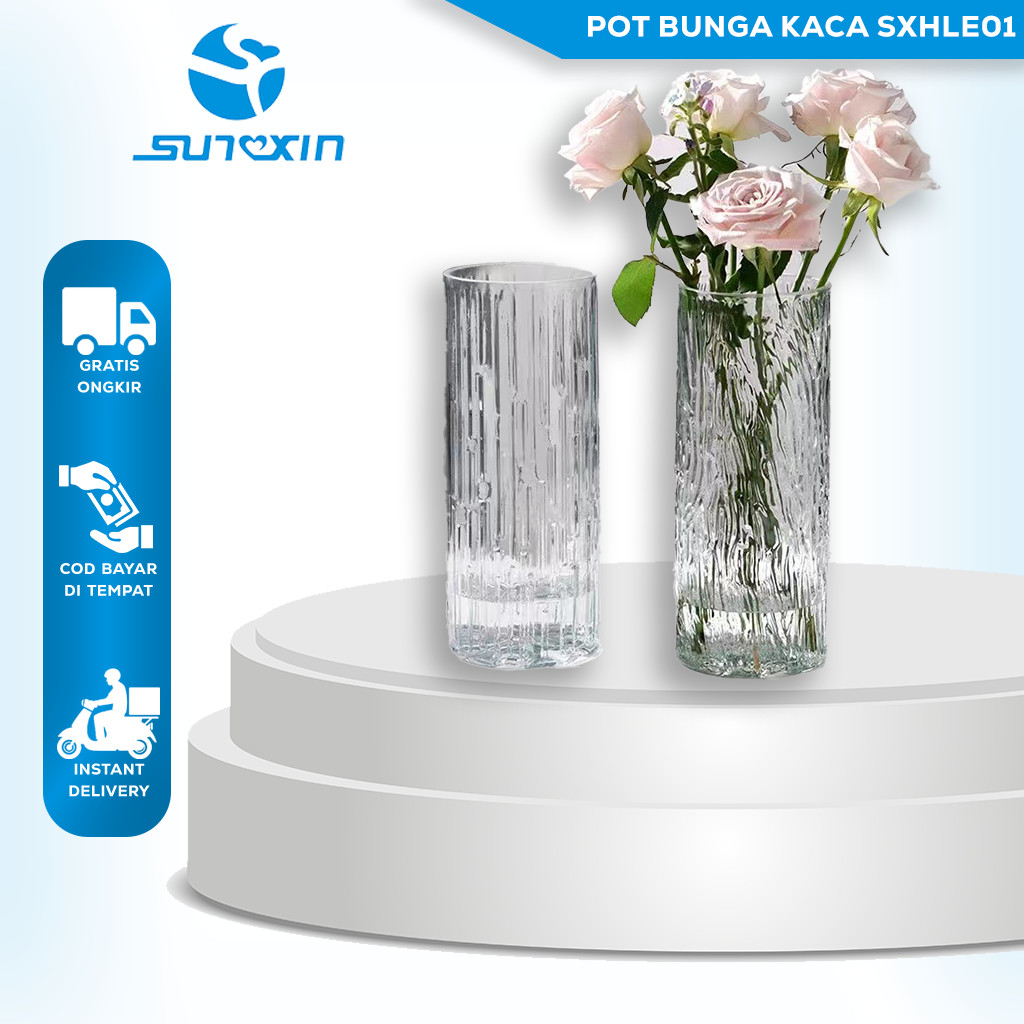 SUNXIN VAS BUNGA KACA BENING Diameter 10CM E01/ VAS KACA TINGGI BAMBU / VAS BAMBOO / VAS TANAMAN AIR