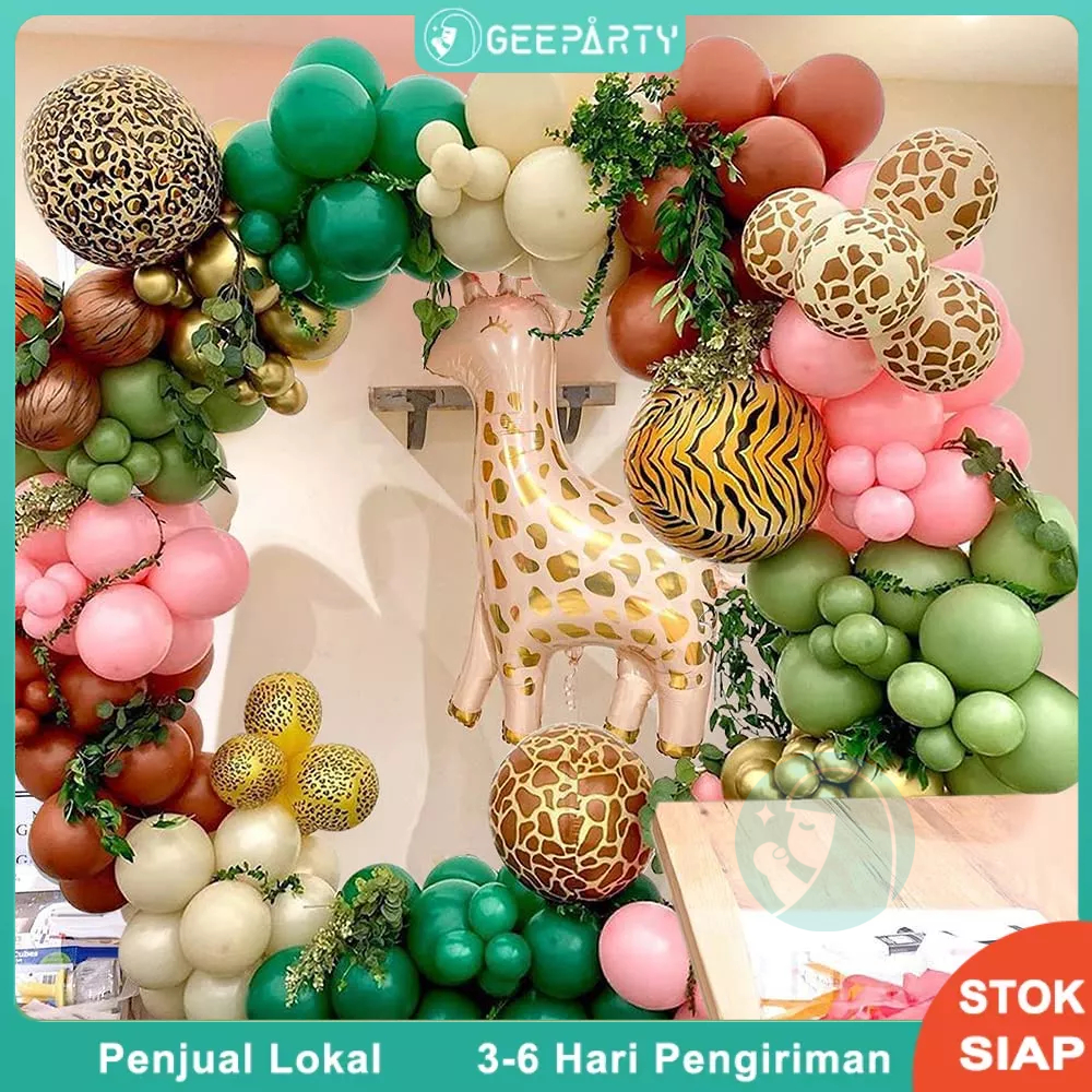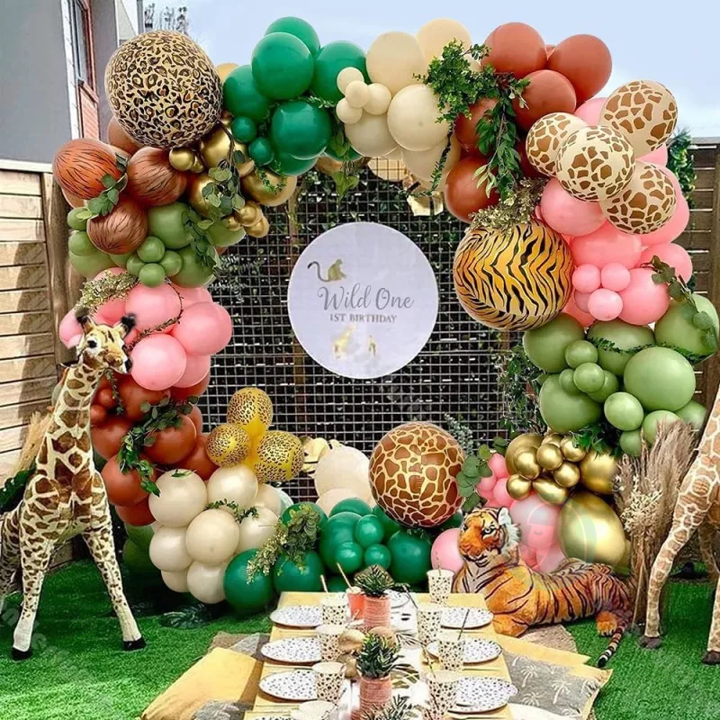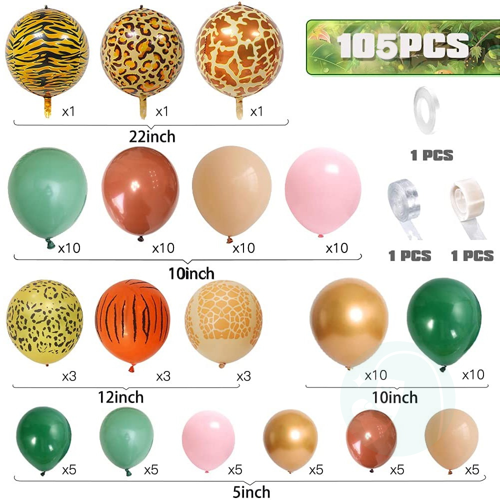 105 pcs Safari Hutan Balon Bermotif Garland Set untuk Pesta Ulang Tahun Hewan Pernikahan Dekorasi