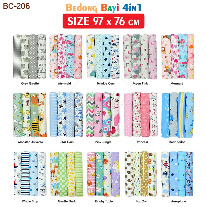 KAIN BEDONG BAYI SET 4 PCS JUMBO UKURAN 97X76 CM FLANEL MOTIF POLOS RANDOM BABY NEWBORN BARU LAHIR MURAH