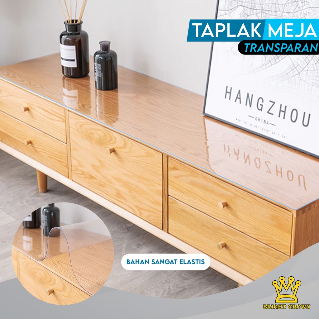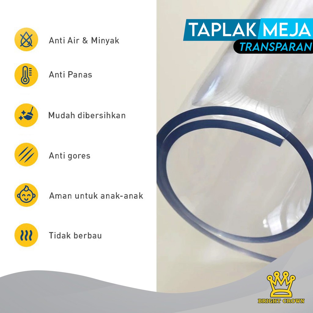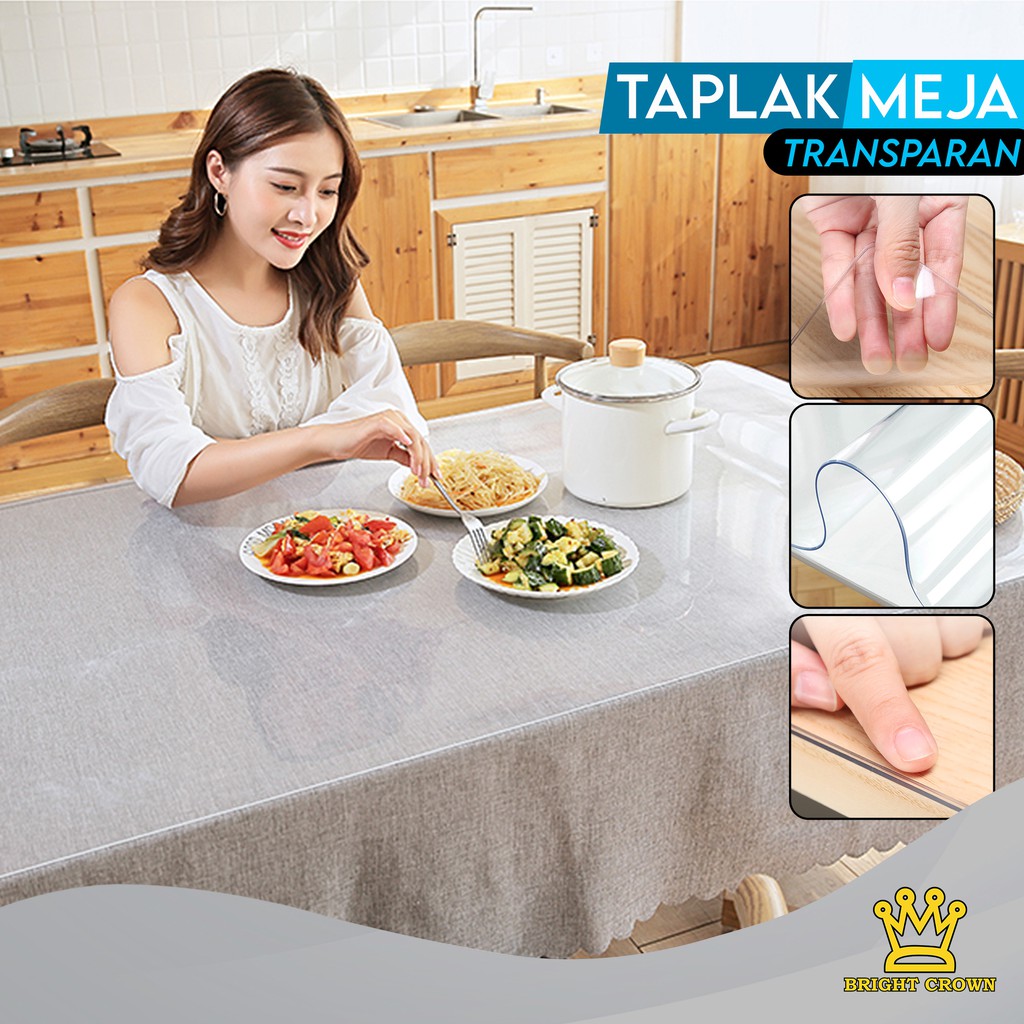 Bright Crown Taplak Meja Transparan Plastik PVC Premium 100x140cm Bisa Custom Ukuran High Quality