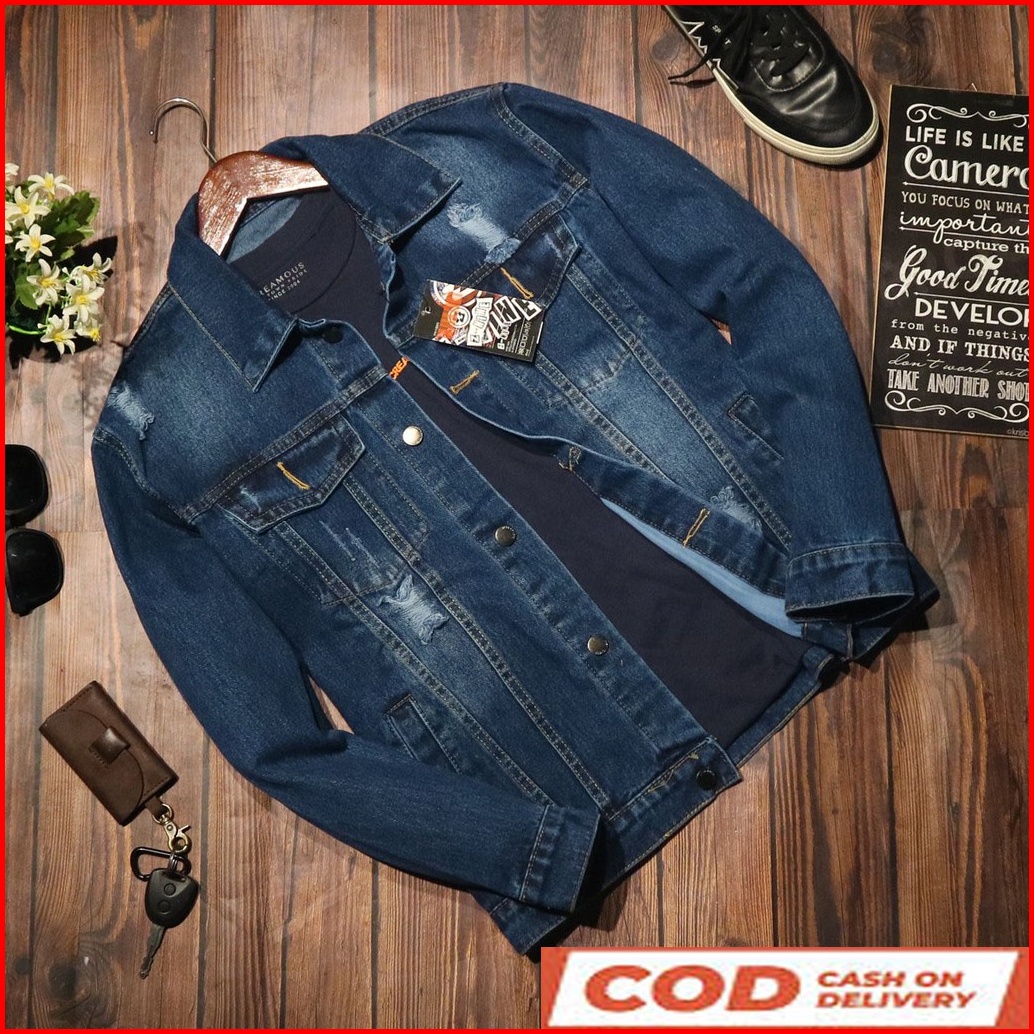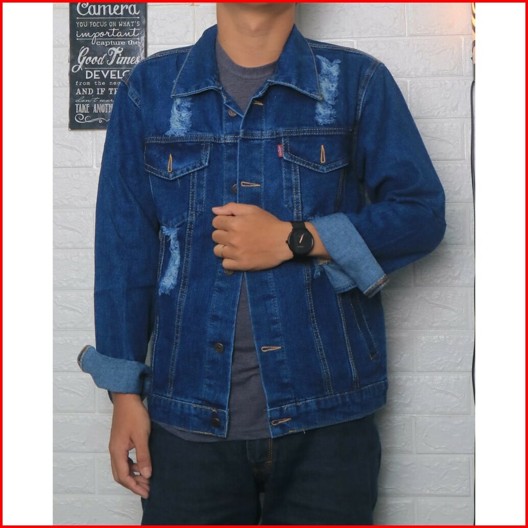 Nyaman Halus Lembut Adem Buat Cocok Jaket Jeans Cowok Pria Biru Indigo Bi Fashion Pr Hits Bagus X8l5