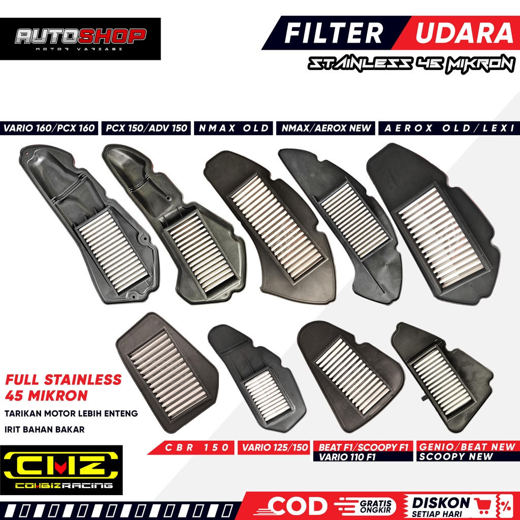 FILTER UDARA STAINLESS VARIO 110 125 150 160 BEAT F1 FI ESP DELUXE GENIO ALL NEW SCOOPY 110 NMAX NEW OLD AEROX PCX 150 1