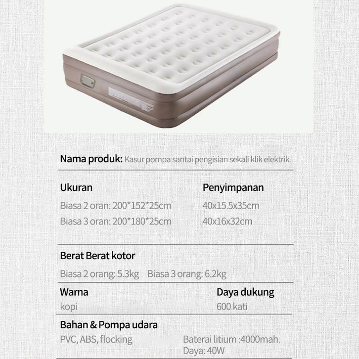 kasur udara 【Garansi 10 tahun】kasur angin Tempat Tidur Tiup Otomatis untuk Rumah Gandaa Luar Ruangan Portabel