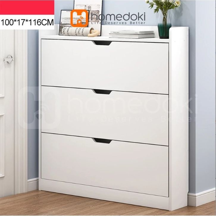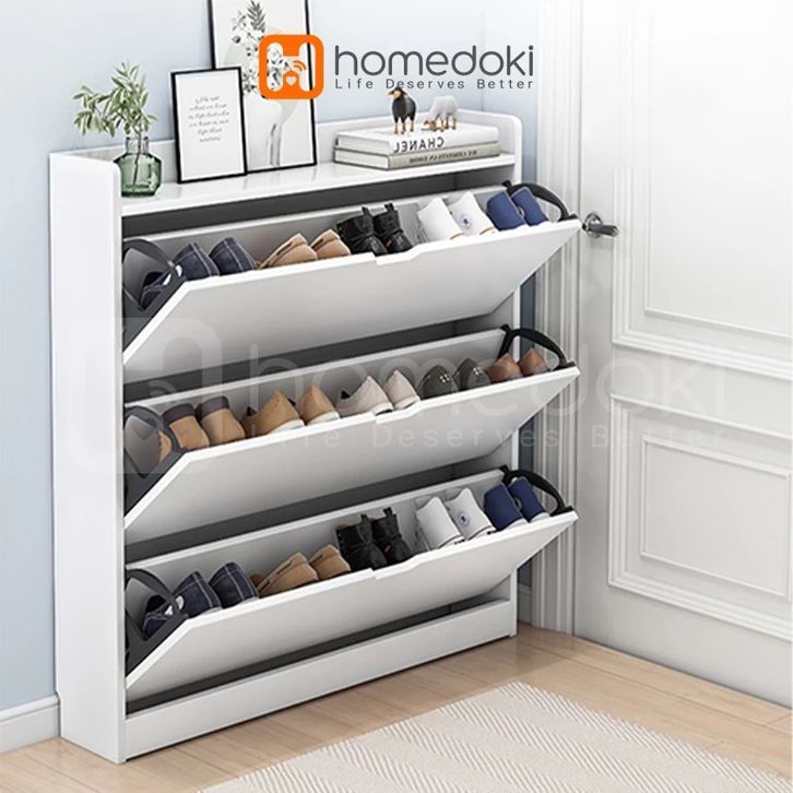 Homedoki Lemari Rak Sepatu Kayu Dengan Rak Serbaguna Rak Lemari Sepatu Minimalis Kayu Susun Penyimpanan Multifungsi