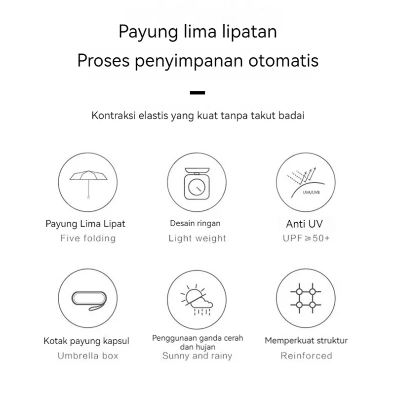 KAISEN Payung Lipat Mini Anti UV / Anti Hujan dan Sinar UV Matahari / Payung Lipat Otomatis Anti UV