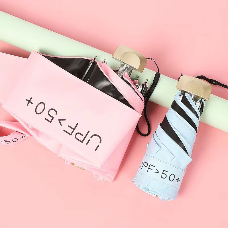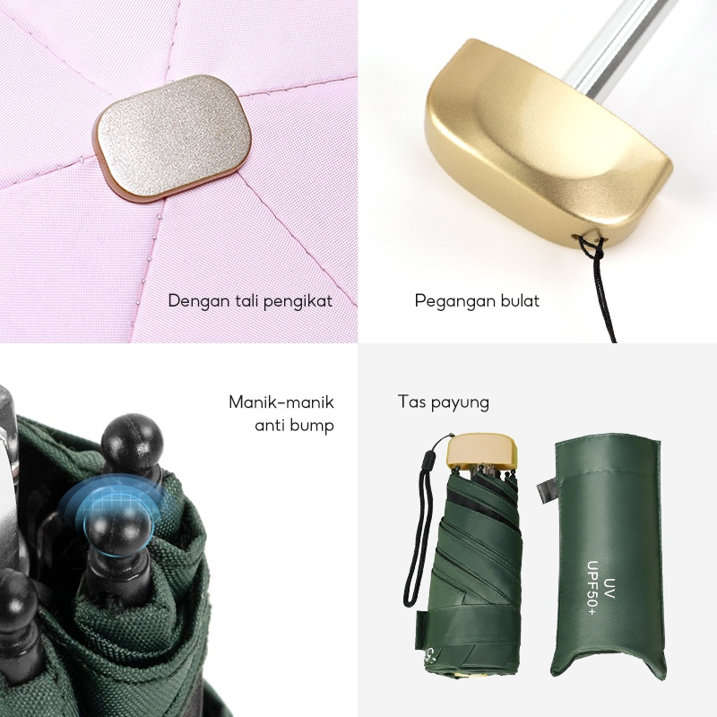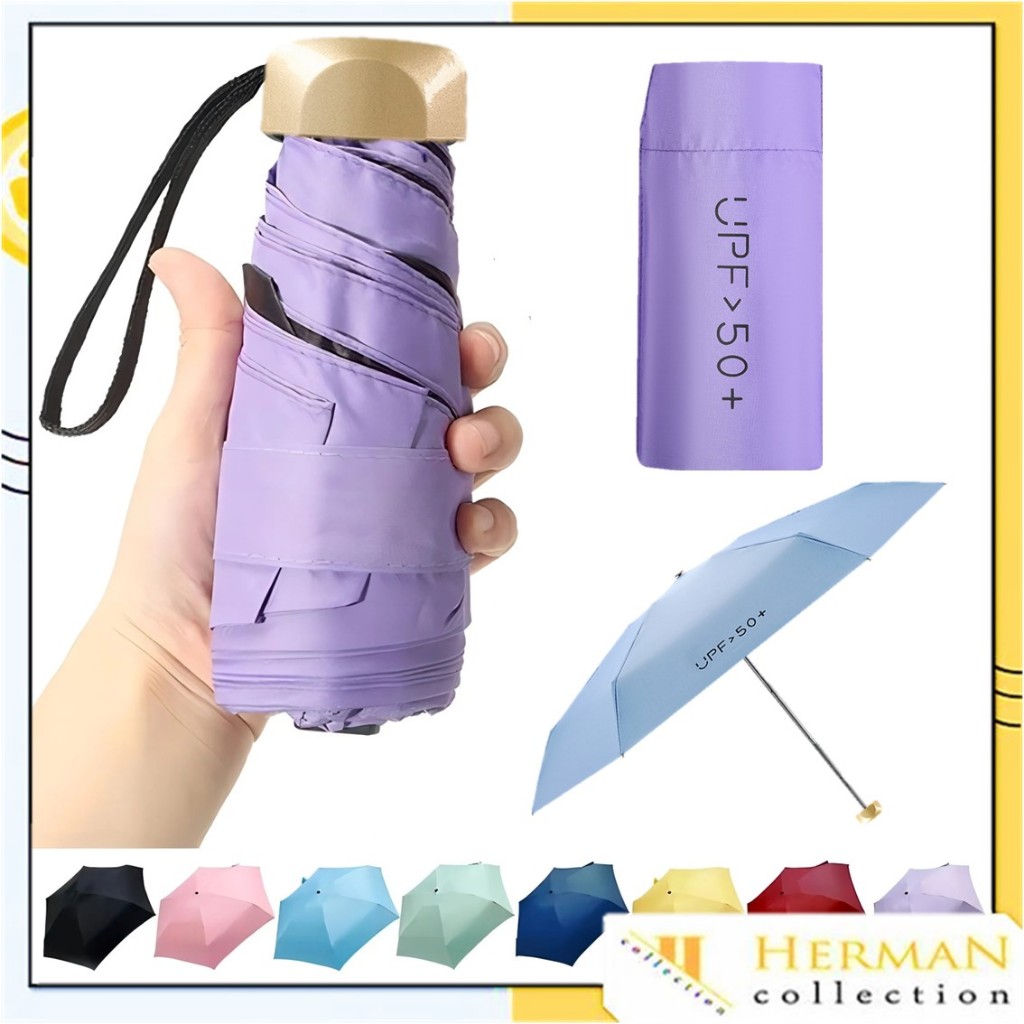 HC Payung Lipat Kapsul Anti UV UPF 50+ Free Pouch Motif Polos Folding Umbrella Ultra Violet Payung Tabir Surya Hujan ata