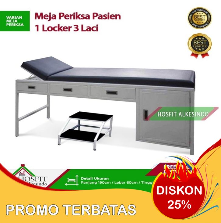 FREE ONGKIR- Meja Periksa Pasien 1 Locker 3 Laci | Examination Table Coating