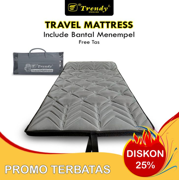 FREE ONGKIR- TRENDY TRAVEL MATTRESS 90X200X6 CM - TRAVEL BED / KASUR GULUNG LIPAT - ABU-ABU, 90X200