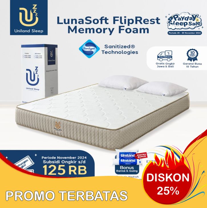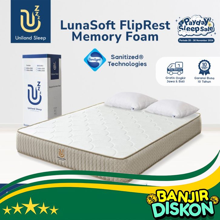 FREE ONGKIR- KASUR BUSA UNILAND SLEEP LUNASOFT FLIPREST 25CM MEMORY FOAM DUAL FEEL - 90X200