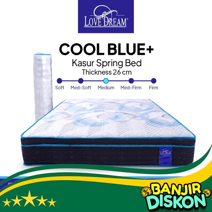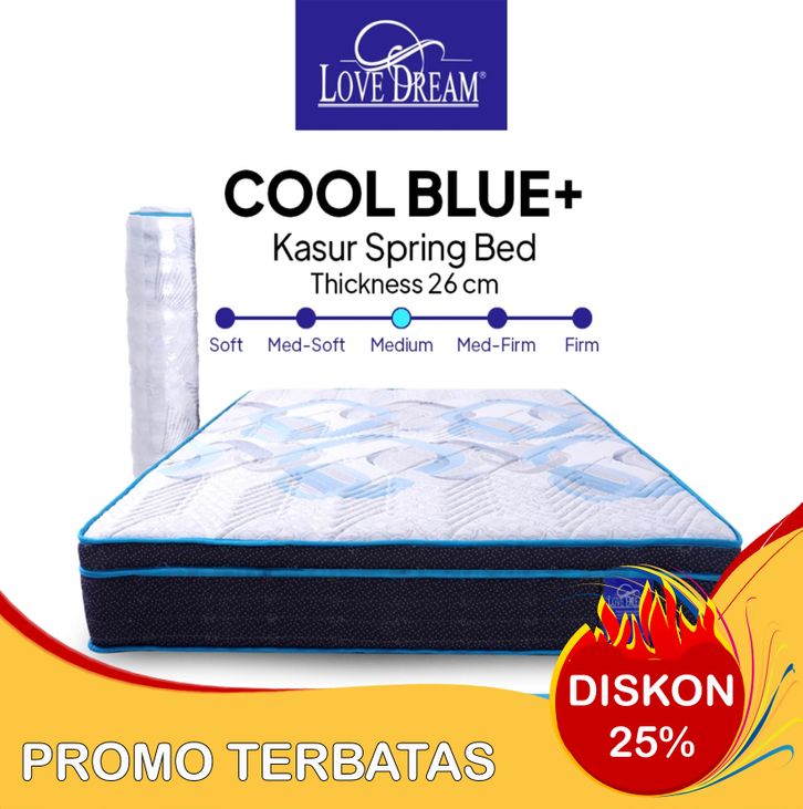 FREE ONGKIR- Love Dream Cool Blue+ - Kasur Spring Bed In a Box / Euro Top / Tebal 26cm