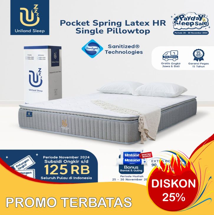 FREE ONGKIR- KASUR POCKET SPRING BED LATEX HR SINGLE PILLOWTOP 30CM UNILAND SLEEP - 90X200