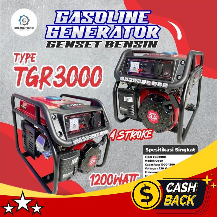 Genset 1200W TGR3000 TIGER X MUSTANG MG2500AVR / Power Generator 1200 Watt 4 Tak TGR 3000 MG 2500AVR Gasoline Generator