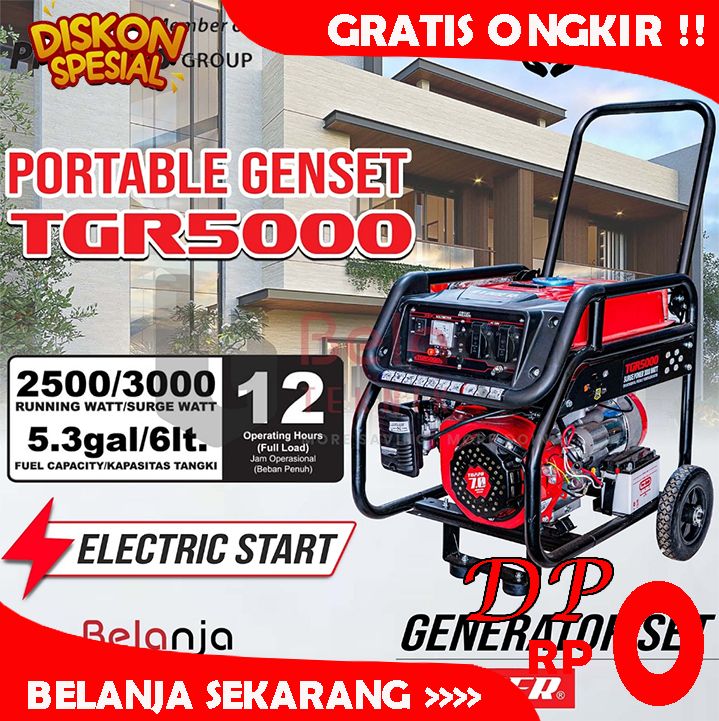 Gratis- Mesin Generator Tiger TGR5000 Genset Bensin 2500 Watt TGR 5000 Genset Recoil Starter