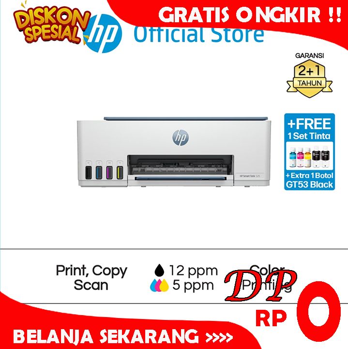 Printer HP Smart Ink Tank 525 / 520 All in One Print Scan Copy USB Fotocopy Color Colour Warna Garansi 2 Tahun Promo