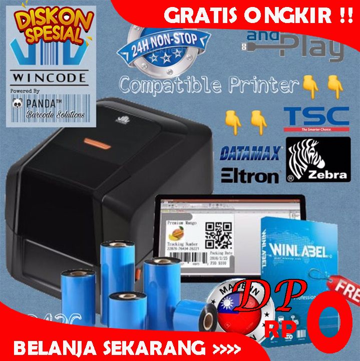 BARCODE PRINTER WINCODE C342C THERMAL TRANSFER/RIBBON BONUS APLIKASI CETAK LABEL WINLABEL by PANDA