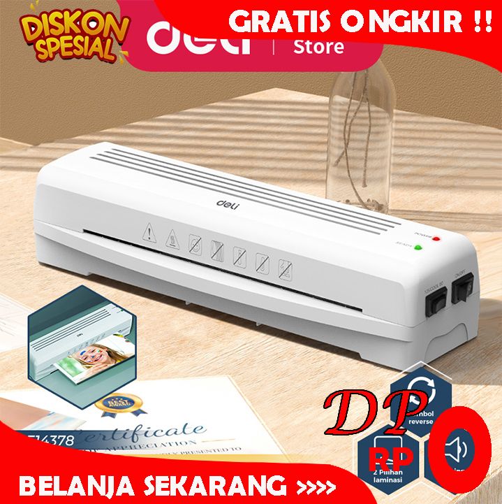 Deli Laminator Mesin Laminating A4 80-125 Mic Laminasi Hot & Cold Foto Dokumen E14378