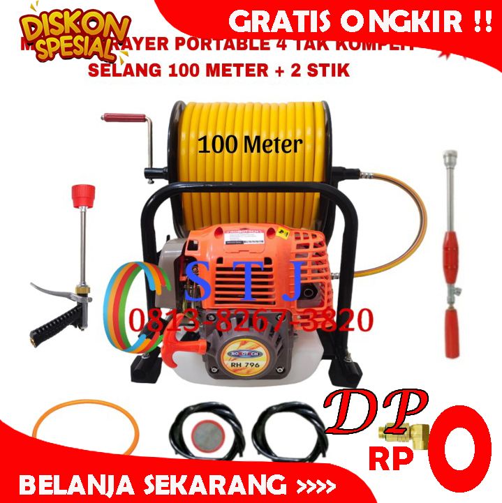 Gratis- MESIN SPRAYER PORTABLE 4 TAK SELANG 100 METER - 20 METER