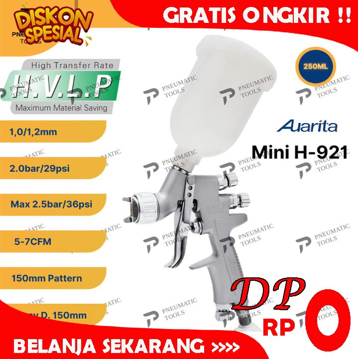 Gratis- SPRAY GUN AUARITA MINI H921 HVLP - AUTOMOTIVE PAINTING SPRAY GUN H-921 - NOZZLE 1,0