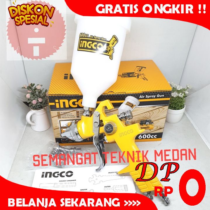 INGCO SPRAY GUN HVLP SEMPROTAN ANGIN CAT INGCO TABUNG ATAS 600cc HVLP