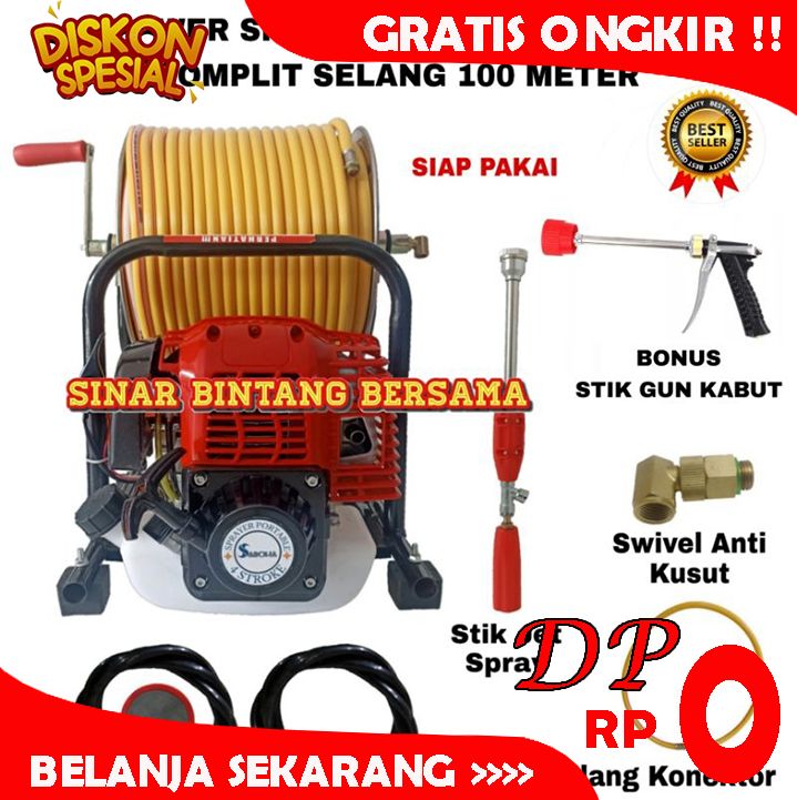 DISKON- Sprayer Portable 4 Tak Komplit Selang 100 Meter Dengan 2 Stik Multifungsi