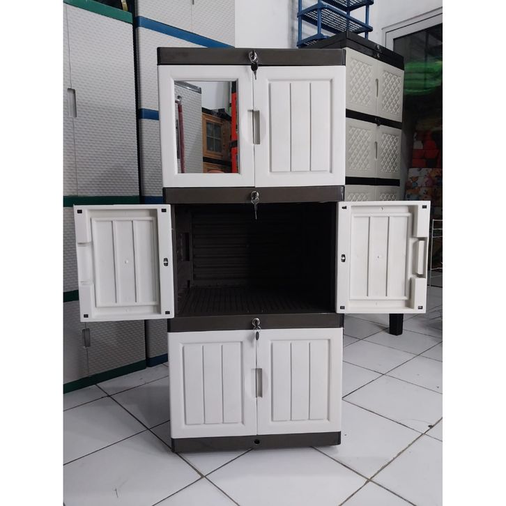 LEMARI PAKAIAN PLASTIK TABITHA dengan Laci dan Kunci Lemari Lemari Plastik dengan Laci: Ideal untuk Penyimpanan Pakaian