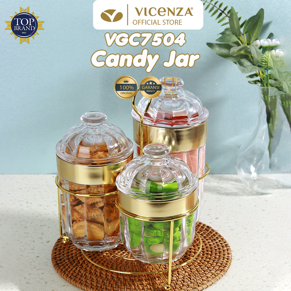 FREE PACKING Toples Kue Kering Keramik Set Vicenza VGC7504 - Toples Permen Kaca Sachi Dengan Rak vicenza official store
