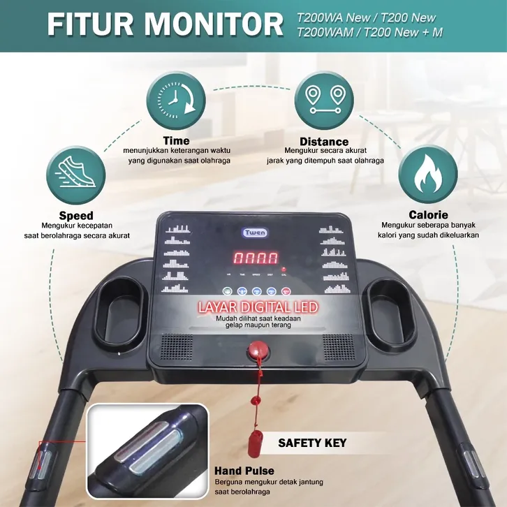 TWEN T200WA new T200 new + M T200WAM Treadmill Listrik Treadmill Portable Treadmill Multifungsi Treadmil Lipat Treadmill