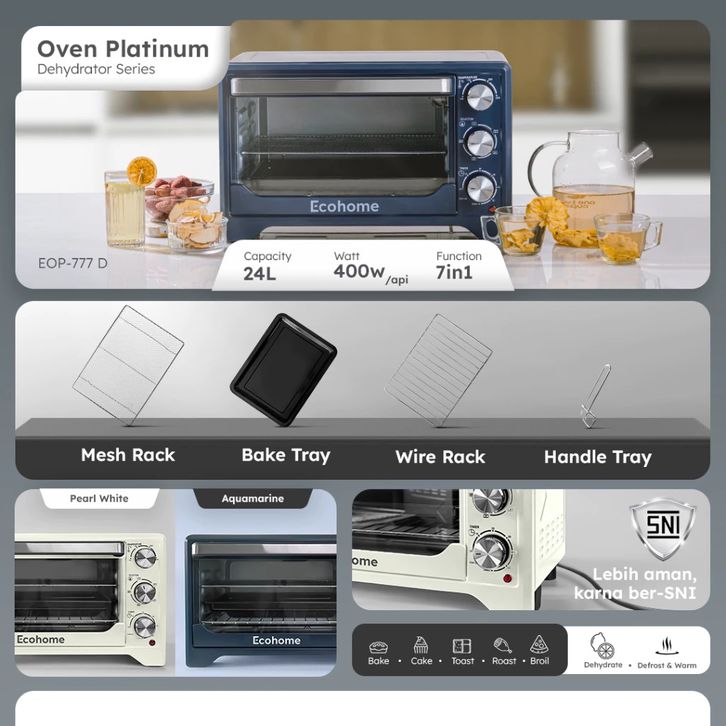 Oven Platinum Series EOP777 24L Capacity with Defrost Warm and Dehydrator + Fan Low Watt