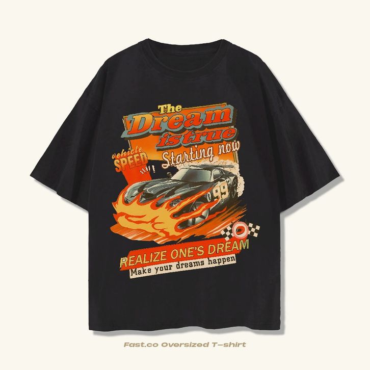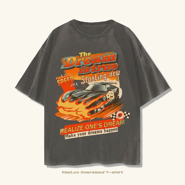 Car And Slogan Graphic Tshirt Oversized - The Dream Is True Baju Kaos Pria Distro Kekinian
