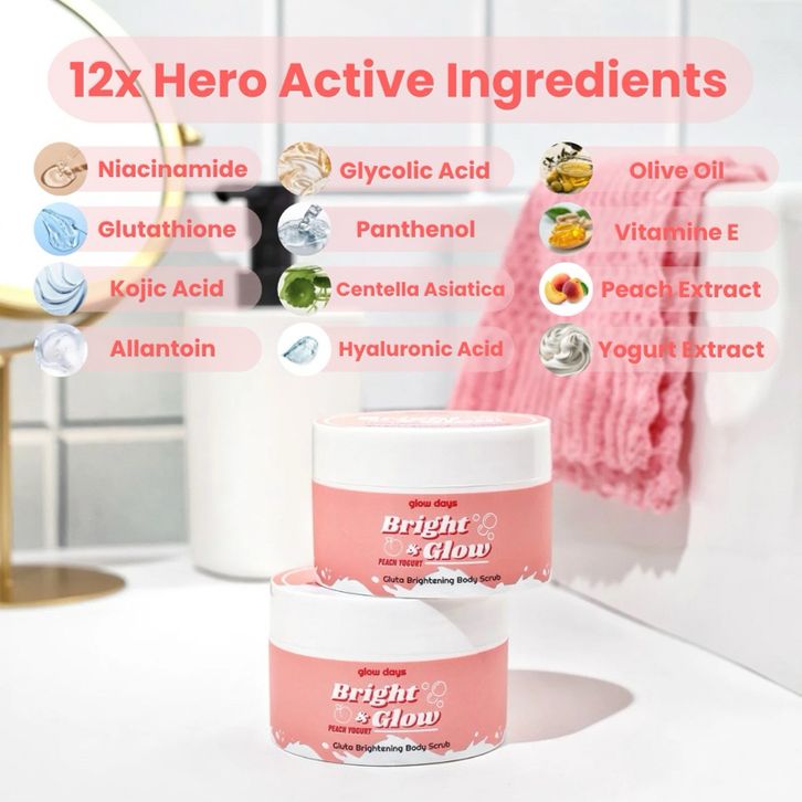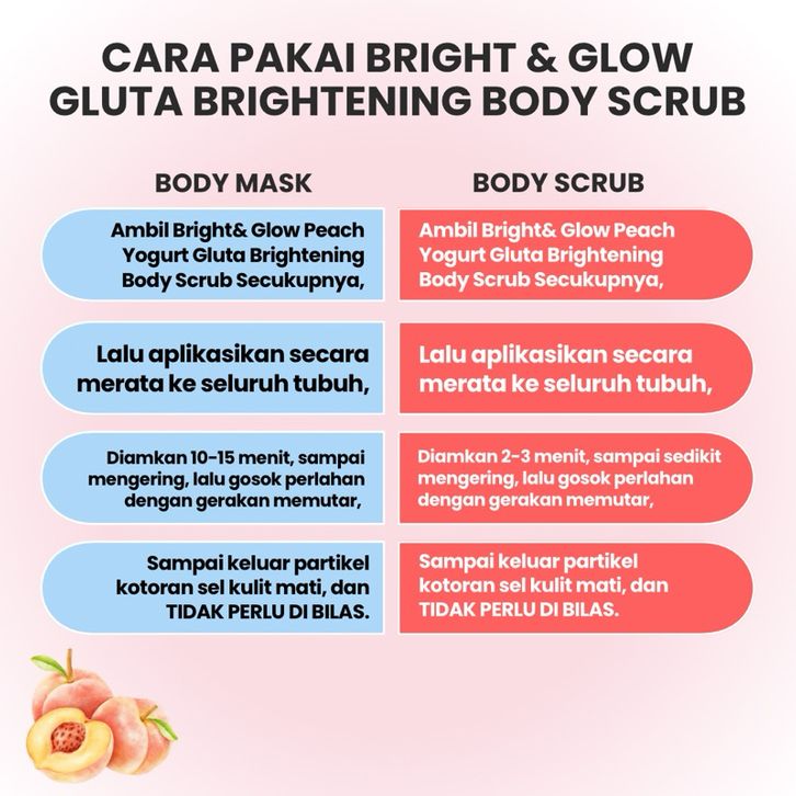 [BUNDLING 2 PCS] BRIGHT AND GLOW PEACH YOGURT GLUTA BRIGHTENING BODY SCRUB BPOM READY STOCK
