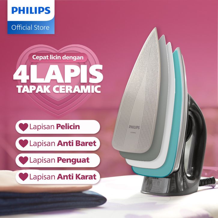 PHILIPS SETRIKA KERING HD1173/80 HITAM - CERAMIC 4 LAPIS, ANTI-LENGKET, GOSOKAN BAJU - ORIGINAL PHILIPS OFFICIAL STORE