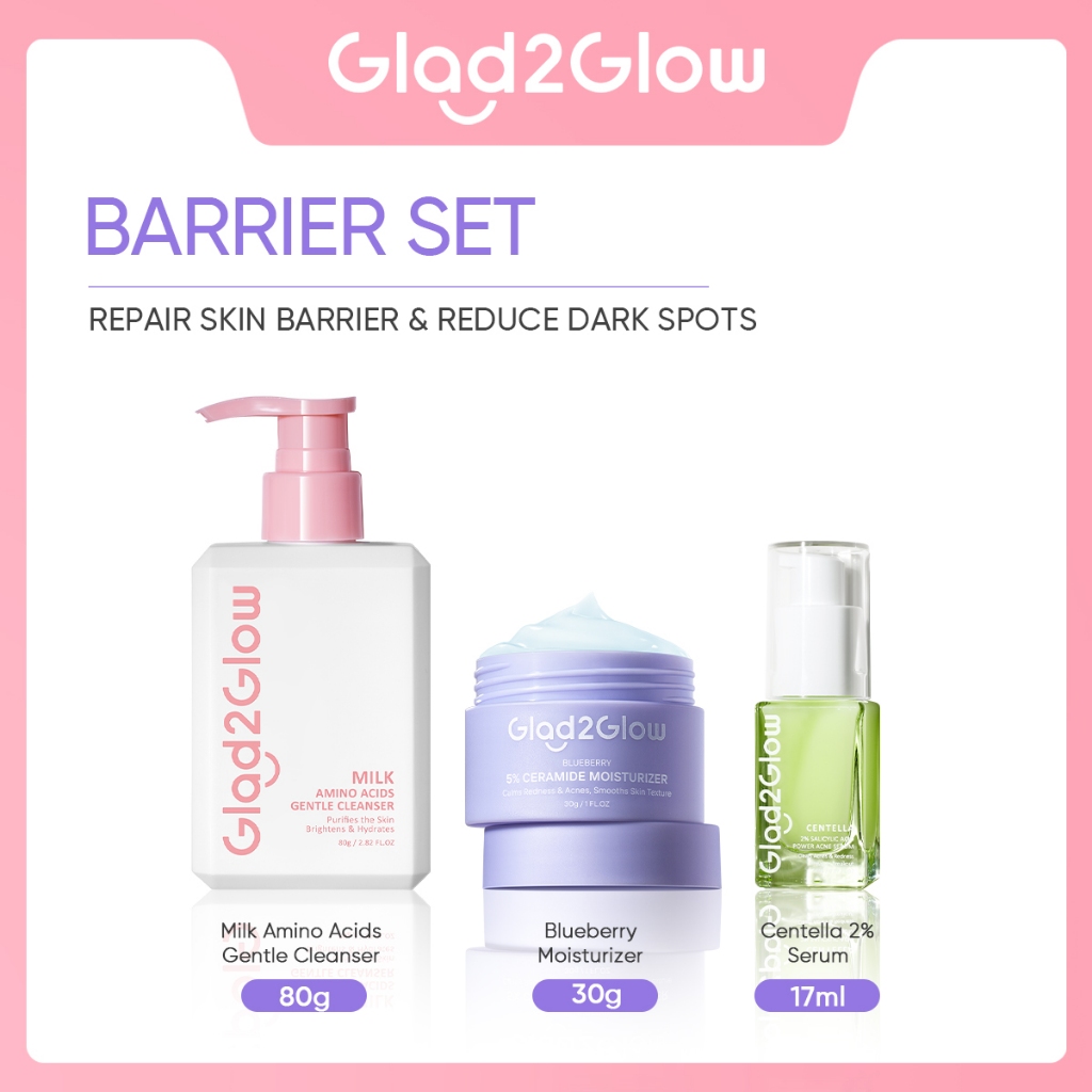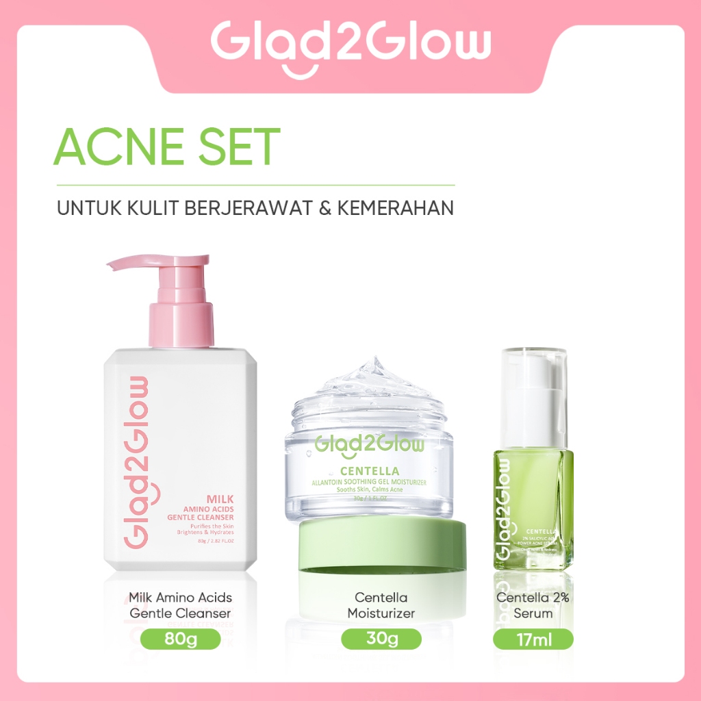 Glad2Glow Paket 3pcs Set (Cleanser + serum + Moisturizer) Serum Wajah Pelembab Wajah Face Wash Pembersih Wajah Skincare Kit Bundle