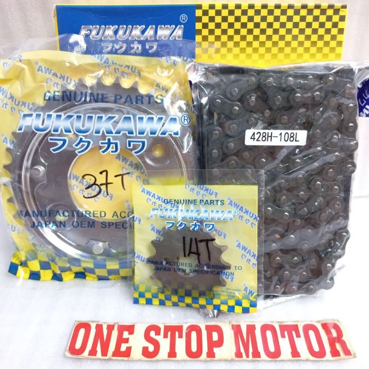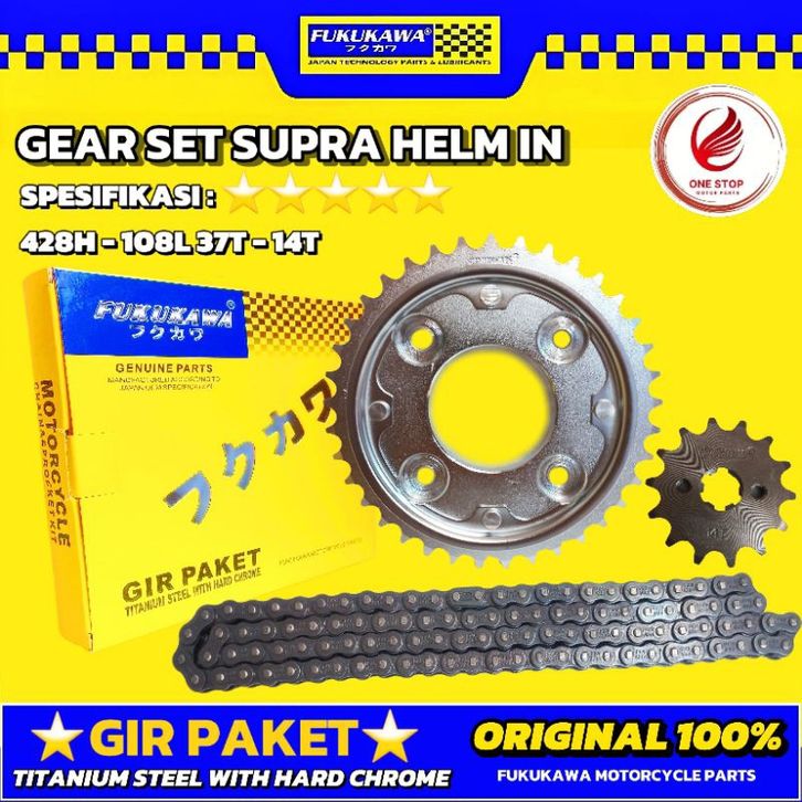 CICILAN/ GEAR SET GIR PAKET ASLI FUKUKAWA SUPRA X 125 HELM IN REVO FIT FI 428H-108L 37T 14T ORIGINAL FKKW