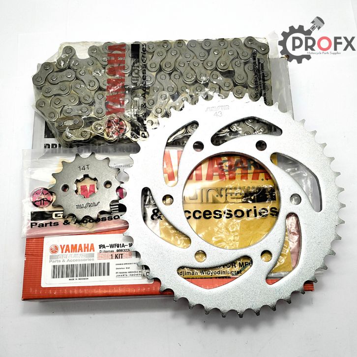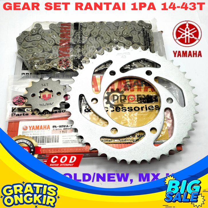CICILAN/ GEAR SET RANTAI YAMAHA 1PA 14-43T VIXION NEW LAMA/OLD MX KING KUALITAS ORIGINAL YGP ASLI GIGI TARIK
