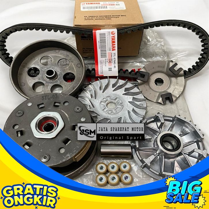 CICILAN/ PAKET CVT LENGKAP MIO SPORTY/SMILE/SOUL KARBU 5TL (VANBELT+RUMAH ROLLER SET+KIPAS+PULLY ASSY)