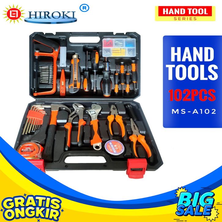HIROKI Tool Kit Set 102 pc. Box Peralatan Pertukangan Hand Tools Lengkap 102 Pcs Alat Tukang Organizer Tool