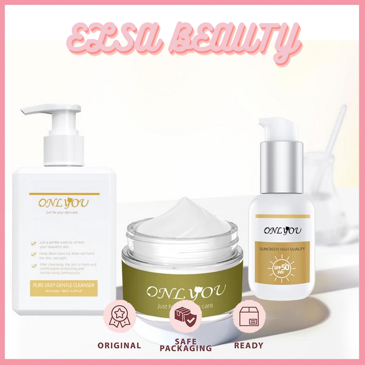 ONLYOU MAKEUP 3PCS PAKTE Menyegarkan Sunscreen SPF 50+ PA+ 50G & Whitening moisturizer cream 30G & Amino Facial Wash 150ml /SKINCARE GLOWING/ELSA BEAUTY/PRIA WANITA/OFFICIAL/