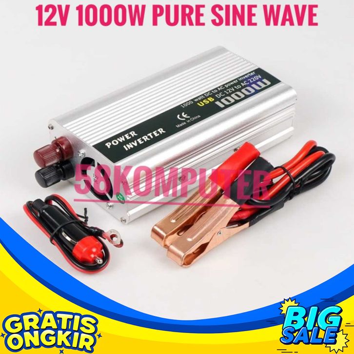 CICILAN/ POWER INVERTER 1000WATT DC 12V/24V TO AC 220V 1000WATT USB PORT PSW - 1000W 12V SLVR
