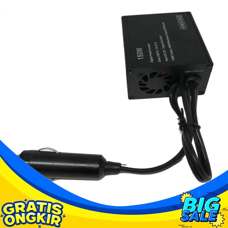 CICILAN/ ADAPTER POWER INVERTER CAR MOBIL CONVERTER DC TO AC 150W 220V + 2 USB
