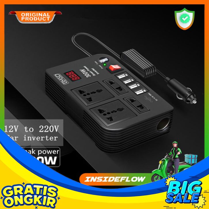 CICILAN/ CAR POWER INVERTER MOBIL PENGUBAH ARUS DC 12V TO AC 220V 300W 4 USB E8