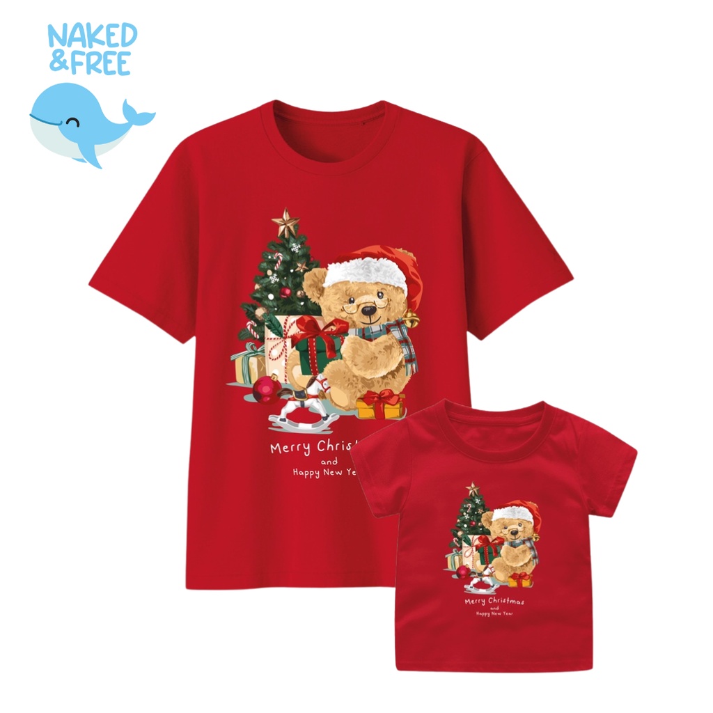 Naked & Free Baju Kaos Natal Bear Christ Bayi Anak Remaja Dewasa Bahan Katun Combed 30s