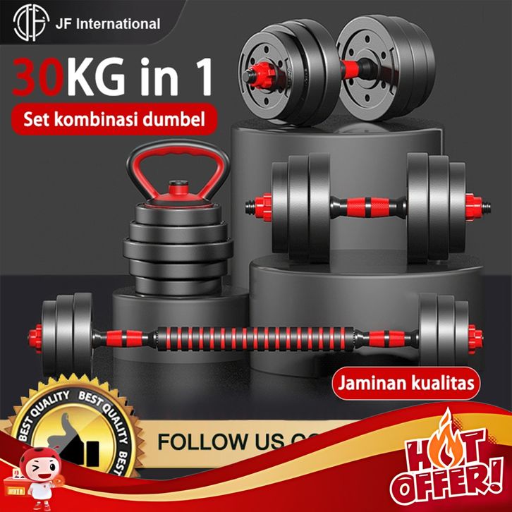 Promo- 【Spot barang】Dumbbell Barbel set peralatan fitness 30 kg bisa disambung Tiang Angkat JF 010-77