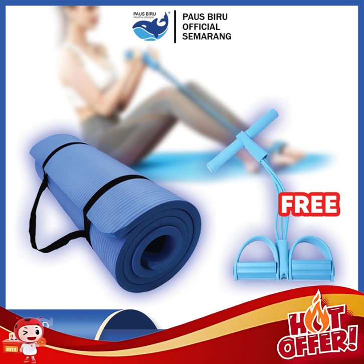Promo- PROMO Yoga Mat 8mm FREE Tummy Trimmer - Paket Olahraga Dirumah Pria Wanita - Alat Olahraga Fitness Pengecil Perut